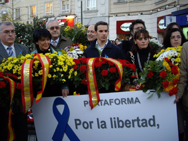 - Vecinos de Paz de Berriozar (Navarra)En estos momentos la plataforma se encuentra en conversaciones con las asociaciones de víctimas para que pasen a ser parte de la misma. Tras la presentación, los miembros de "Por la Libertad. No al chantaje de ETA" se han dirigido a la plaza de la República Dominicana para realizar una ofrenda floral.