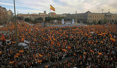 Las calles de Madrid acogieron ayer la mayor manifestación convocada por un solo partido desde la llegada de la democracia. Cientos de miles de personas -más de 2 millones según la Comunidad de Madrid y más de 300.000 según el propio Gobierno ZP- , con una marea de banderas españolas, tomaron el centro de la capital para protestar contra la excarcelación del etarra De Juana y contra la política antiterrorista de Zapatero.
