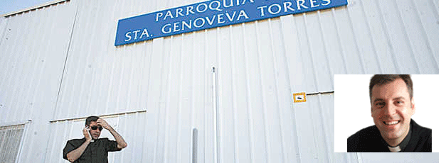 David Benítez tiene 33 años y está licenciado en Historia de la Iglesia por la Universidad Pontificia de Comillas. Hace algo más de un año que fue nombrado párroco de Santa Genoveva. Una parroquia en una barracón, a pesar de estar en una de las ciudades más ricas de Madrid. “Lo importante no es el edificio, sino la gente. En su momento, podremos construir un templo de ladrillo”, dice, sonriente.