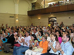 Entre los bautizados, por supuesto, la mayoría habían sido bautizados como católicos de pequeños. Es decir, el colegio católico cedía sus instalaciones para que quedara constancia, por vía del rebautismo, de la renuncia al bautismo católico de unas 20-30 personas. En realidad el evangélico ex-católico que se rebautiza está más haciendo una afirmación de su fe evangélica que una renuncia a su pasado católico, que en muchos casos es literalmente inexistente desde la primera comunión. Sé bien lo que es eso porque yo mismo me rebauticé como protestante evangélico en las Lagunas de Ruidera hace ya unos 18 años. Pero ciertamente me habría extrañado mucho que mi “rebautismo” tuviera lugar, por ejemplo, en el salón de actos de los Escolapios de Getafe, donde asistí como alumno en mi infancia.