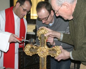 entrega y del acto de colocar la Cruz en el relicario,