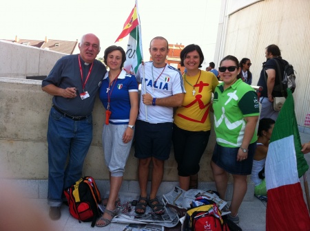 Hoy quiero destacar el trabajo abnegado de los voluntaroios que hacen que todo sea posible. Anoche nos fuimos a la cama casi a las dos, ya que los muchachos querían ver el partido Madrid – Barça y nosotros con ellos. Partido animado, ya que teníamos hinchas en ambos bandos. Acabó el encuentro y los del Madrid felices porque sus compañeros del Barça estaban alegres con el triunfo. Cosas de la JMJ.