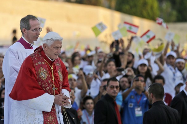 Especialmente emotivo fue el encuentro del Sucesor de Pedro con los jóvenes, una verdadera “JMJ de Medio Oriente”, celebrada en la explanada frente al Patriarcado Maronita, siendo huésped así de otro de los cuatro patriarcas, el maronita, Su Beatitud Bechara Boutros Rai. Ya el Beato Juan Pablo II, durante su breve viaje a esta nación, había realizado un encuentro con la juventud. En esta ocasión fue el turno de Benedicto XVI, quien fue recibido por las aclamaciones de los jóvenes, que en algunos momentos gritaban, casi como en un eco de la JMJ de Madrid, “¡ésta es la juventud del Papa!”. El Santo Padre, al recordarles que viven en la región donde nació Jesús y se desarrolló el cristianismo, afirmó que se trata de un “gran honor” y una “llamada a la fidelidad”, ante la cual, incluso conociendo tantas dificultades de la vida cotidiana, no deben probar “la miel amarga de la emigración”. En otro pasaje importante de su discurso, los exhortó a “buscar buenos maestros, maestros espirituales, que sepan indicaros la senda de la madurez, dejando lo ilusorio, lo llamativo y la mentira”, recordando que en Jesús encontrarán “la fuerza y el valor para avanzar en el camino de vuestra vida, superando así las dificultades y aflicciones. En él encontraréis la fuente de la alegría. Cristo os dice: Mi paz os doy. ¡Aquí está la revolución que Cristo ha traído, la revolución del amor!”. Luego de invitarlos a la oración, a la meditación de la Palabra, a la vida sacramental, a responder a la llamada del Señor, y al conocimiento de la fe, les recordó que ellos deben ser “los mensajeros del evangelio de la vida y de los valores de la vida” y resistir “con valentía a aquello que la niega: el aborto, la violencia, el rechazo y desprecio del otro, la injusticia, la guerra”. Finalmente, una llamada al perdón y a vencer el mal con el bien, mirando a Jesús: “Él no ha vencido el mal con otro mal, sino tomándolo sobre sí y aniquilándolo en la cruz mediante el amor vivido hasta el extremo. Descubrir de verdad el perdón y la misericordia de Dios, permite recomenzar siempre una nueva vida. No es fácil perdonar. Pero el perdón de Dios da la fuerza de la conversión y, a la vez, el gozo de perdonar. El perdón y la reconciliación son caminos de paz, y abren un futuro”.
