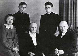 Por otro lado, en la foto del mismo día, el Papa aparece con sus padres (Joseph y María Ratzinger), su hermano Georg Ratzinger, nacido en 1923, también sacerdote y su hermana Maria Ratzinger, quien administró la casa del cardenal Ratzinger hasta su muerte en 1991.
