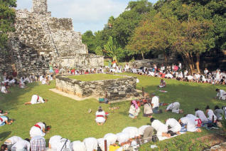 El origen de todo está en una piedra tallada encontrada en el sitio mexicano de Tortuguero, que alude a un evento místico en el solsticio de este diciembre. Según el calendario de los mayas, es la culminación de la cuenta larga de 13 ciclos con que medían el tiempo, el baktun, cada uno de 400 años. “Los mayas era científicos y sabían todo de la naturaleza y de los ciclos del mundo. Esta fecha no tiene nada de apocalíptica. Los mayas tampoco creen en el fin del mundo”, comentó Rohan Tamdbyrajah, un turista de 20 años que no quiso perderse la ceremonia.