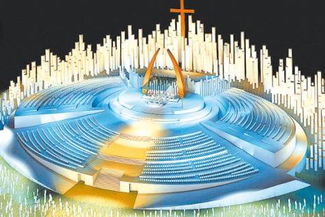 Una pantalla gigante proyectará imágenes durante todas las celebraciones. Una cruz con 22 metros de altura, se erige en el centro del escenario. El Papa bendecirá a los fieles desde un altar que se instalará a ocho metros del suelo.”