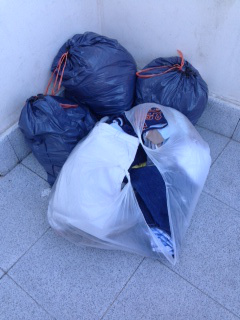 Bolsas de ropa. Así me las he encontrado esta mañana cuando sacaba a pasear al perro. No es la primera vez. Ropa y cualquier otra cosa. Para la parroquia, todo vale.