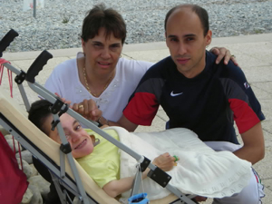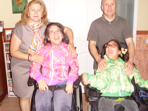 «Ellas son felices, porque en esta casa hay mucho amor. Mis dos hijas son lo primero, no tienen la culpa de lo que les hicieron cuando nacieron. Mi vida es de mis gemelas. Desde aquel momento yo no he vuelto a trabajar. Bueno miento, a trabajar sí, a cobrar no», relata. Cada día, esta amorosa madre viste, lava y ayuda a realizar los ejercicios a sus niñas. Las lleva al taller de cerámica, música y clases de natación… «La gratificación de haber recibido el premio es enorme, pero necesitamos mucha ayuda porque son dos dependientes, no una y, además, como dice mi marido, no son solo los días, son también las noches», cuenta. sus sonrientes gemelas de 15 años Miriam y Erika, ambas con parálisis cerebral, son las estrellas en cada