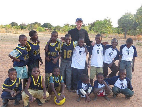 Y así pues, a cambiar de actividad rotundamente, ya que al llegar nos esperaban los niños y jóvenes. Gracias al maravilloso efecto de la pelota nueva, las camisetas y los arcos que hicimos la semana anterior… ahora ya llegaron 30 varones, pequeños entre 9 y 14 años. Sin contar los niños pequeños y las niñas que atienden las hermanas, mas los jóvenes. Un buen grupo, que alegra el campito en frente de la misión, con grupos jugando por todas partes. Los varones jugaron a la pelota hasta que ya se los notaba cansados, y de allí fuimos a rezar un rato a la iglesia. Como dice San Juan Bosco, los niños luego de jugar acuden mas fácilmente a las enseñanzas y oraciones. Espero que con ellos pueda perseverar en este trabajo y tratar de ir logrando darles un poquito mas de catecismo y formación. Lo lindo es la amistad y confianza que se va creando, y que después nos abre la puerta de sus corazones. Creo que es importante que se acostumbren a ver la sotana en medio de la cancha de fútbol… y aunque no pueda expresarme bien con las palabras del swahili, creo que los niños entienden perfectamente el otro lenguaje, el universal de la caridad.