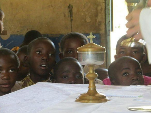 Como siempre, cada domingo tenemos la adoración al Santísimo, bendición y luego comenzamos la santa misa. En esta ocasión los otros padres no estaban, ya que habían tenido que hacer un viaje a Dar es Salaam, la capital, por asuntos de papeles de residencia, y entonces me tocó a mi celebrar la misa y predicar. La homilía todavía muy sencilla, y muy leída. Y leída con ciertas trabas, y lentitudes. Pero creo que salió algo mas o menos entendible, sobre el Fariseo y el Publicano, con una reflexión sobre la oración humilde, que siempre llega al cielo(*).