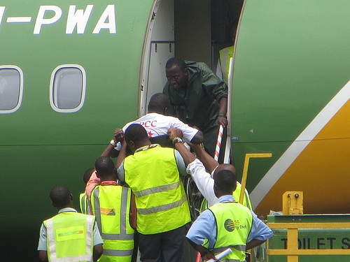 Al otro día tomaríamos un avión, pero un vuelo comercial, no una ambulancia aérea. Eso significaba que no sabíamos si lo dejarían subir. Gracias a Dios, y a un empleado católico de la línea aérea, nos permiten viajar. Lo suben al avión entre grandes dolores del P. Johntin, que tenía una fractura expuesta apenas atendida. Lo mismo puedo decir del arribo a Dar es Salaam.