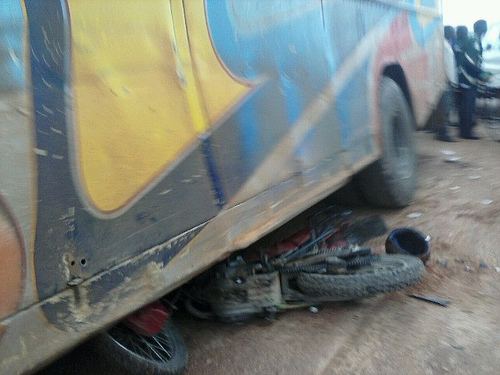 ¿Qué fue lo que pasó? El P. Johntin estaba visitando la aldea de Kangeme, a la que había ido a celebrar la misa, como es costumbre. Al regreso, manejando la moto, en una curva cerrada del camino se encuentra con un colectivo de frente, que venía muy rápido y no le da tiempo a nada. Lo atropella, y el padre, con moto y todo pasa por entre medio de las dos ruedas delanteras. El colectivero logra detener el bus, y milagrosamente el padre estaba vivo, pero con el saldo de una pierna quebrada. De todos modos es milagroso, ya que no tenía otras lesiones, ni en la cabeza, ya que llevaba casco, ni en otras partes del cuerpo.