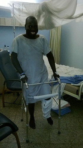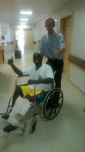 Lo llevaron a Ushetu y en el dispensario hicieron los primeros auxilios, sin embargo por ser una fractura expuesta de tibia, se veía la necesidad de trasladarlo a otro lado, ya que iba a necesitar una operación. Lo suben de nuevo al vehículo y deben recorrer con mucho cuidado las dos horas de viaje de camino de tierra hacia la ciudad de Kahama… ya que cada pozo era renovar los dolores. Al llegar al hospital ya estaba esperando un sacerdote de la diócesis, pero de todos modos se encontraron con lo precario de la medicina del lugar. Se veía que ciertamente necesitaría una operación que no se la podían hacer en ése hospital.