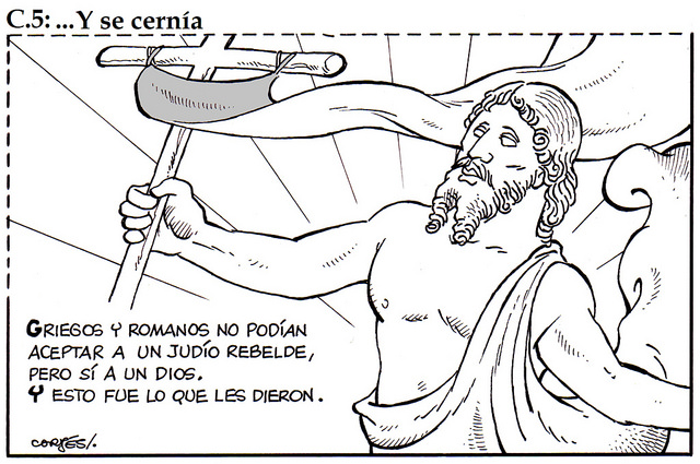Igual que los “chistes” de Mingote eran los grandes editoriales de ABC, las viñetas de Cortés son el editorial diario de RD y expresión meridianamente clara del pensamiento del medio sobre la fe de la Iglesia. Y un montón de obispos tan felices regalando sus escritos y su foto a un medio que, hoy por ejemplo, afirma, eso sí, como una gracia –maldita la gracia que tiene- que Jesucristo no fue más que un judío rebelde al que unos cuantos presentaron como Dios por simple conveniencia.