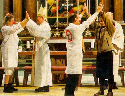 Hay mil maneras de acercarse a los que no comparten nuestra fe. Pero ninguna de ellas puede consentir en aguar y desvirtuar nuestra liturgia, en aparcar en el desván del olvido el culto por el que recibimos el Cuerpo y la Sangre de Cristo que fue derramada una vez para siempre en la Cruz. Lo que ocurrió en el Calvario no fue precisamente un espectáculo entretenido. No había globos, confetti, música de rock ni cosa que se la parezca en el momento en que el Señor daba su vida en pago por nuestros pecados. Pero si no creemos que la Misa es exactamente eso, haremos de la misma un show. Dios no lo permita.