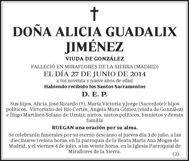 Este pasado viernes, solemnidad del Sagrado Corazón de Jesús, de quien era especialmente devota, falleció mi madre, Alicia, a punto de cumplir los cien años de edad.