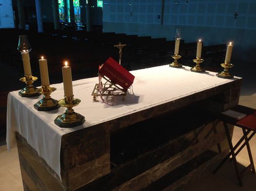He de reconocer que el cambio no me hacía especial ilusión. Es verdad que hasta este momento disponíamos solo de dos velas y el altar quedaba un tanto pobre. Colocar tres a cada lado no cabe duda de que es un paso grande hacia la dignidad y solemnidad de la celebración. Otro problema era lo del crucifijo.En la parroquia tenemos un enorme Cristo crucificado sobre el altar y una preciosa cruz procesional en madera tallada que estaba ubicada junto al altar y semi girada para que pudiera ser contemplada por el celebrante.