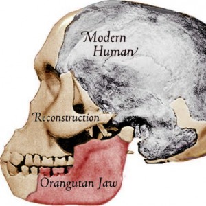 Como premio a tantos desvelos y a tantas búsquedas, se descubrió finalmente en 1912 en Piltdown, Inglaterra, un fósil que muestra caracteres verdaderamente intermedios entre el mono y el hombre; esto es: un cráneo de tipo humano junto con una mandíbula simiesca.