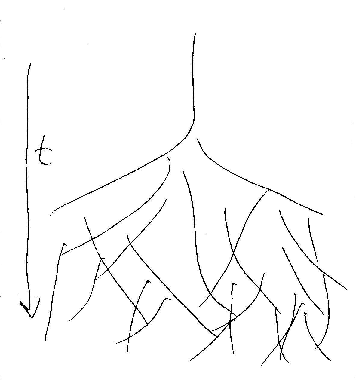Vamos a apoyar la exposición con un dibujo. En una de las páginas de su obra La evolución de las especies, Darwin presenta un dibujo muy parecido a éste.