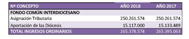 El fondo común se constituye con dos partidas: la asignación tributaria y las aportaciones de las diócesis.