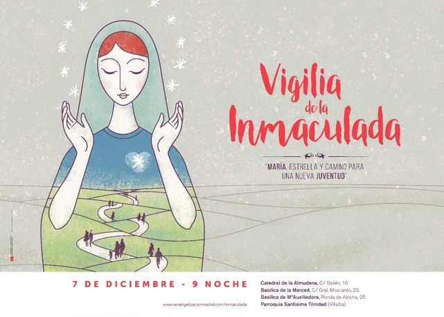 El próximo 7 de diciembre y organizada por la Vicaría Episcopal de Evangelización de la diócesis de Madrid, se celebrará la Vigilia de la Inmaculada de la Concepción de los jóvenes a partir de las 21:00 horas en los siguientes templos:
