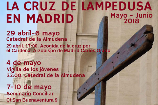La cruz de Lampedusa, hecha con trozos de barcos de migrantes, en Madrid hasta el 17 de junio
