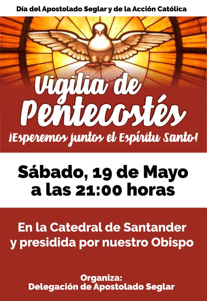 Este sábado 19 de mayo se celebra en la Catedral, a las 21,00 horas, la tradicional Vigilia de Pentecostés con la que, en un clima de oración, se anticipa la “gran venida del Espíritu Santo” que la Iglesia conmemora este domingo 20 con la solemnidad de Pentecostés.