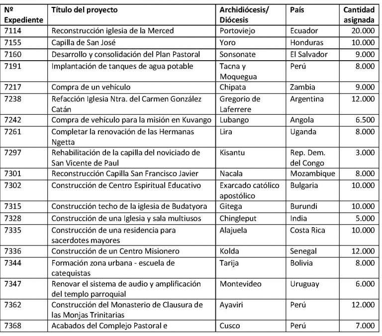 Estos proyectos han sido financiados con la colaboración económica de la CEE, diócesis, congregaciones religiosas, otras instituciones eclesiales (Caritas, OCSHA…), donantes particulares, etc.