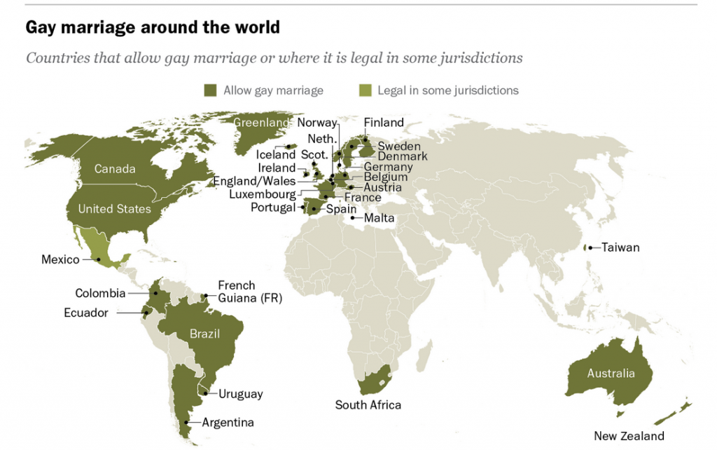 Países con matrimonio gay, solo una minoría