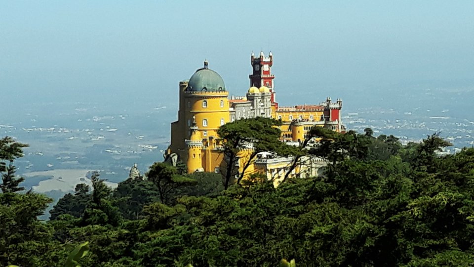 Parecía obligatorio ir al Palacio da Pena, en Sintra, cerca de Lisboa. Me interesé por saber el significado del nombre, pero no lo he conseguido. Pensé que podría ser una pronunciación de Peña, porque el palacio está sobre un lugar elevado, pero parece que no es el caso.