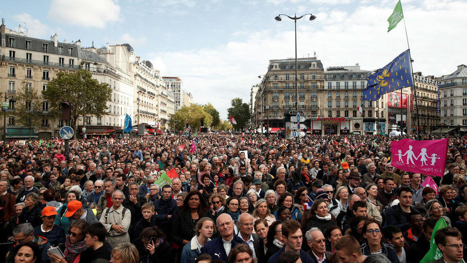 Después de ochenta horas de intensos y serenos debates, la libertad de voto de los partidos refleja un panorama interesante: en contra, las tres cuartas partes de la derecha (LR: Los republicanos), con 12 a favor y 15 abstenciones. El partido del gobierno (LRM: La república en marcha), mayoritario en la cámara, ha apoyado también el texto, con sólo ocho en contra, incluida una diputada excluida del grupo por su postura a favor del derecho de los hijos a tener padre y madre, y veinticinco abstenciones. En el centro, el MoDem, 28 a favor, tres en contra, doce abstenciones. Más unidos los socialistas, con sólo dos votos en contra y tres abstenciones. Y, sobre todo, la extrema derecha minoritaria de RN (Rassemblement national), con cuatro en contra y dos abstenciones.