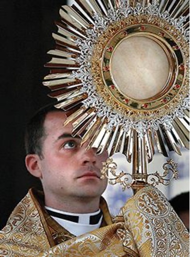 Hablamos de un amor que atraviesa los siglos y, en su eternidad, se hace también temporal. Jesús lo había anunciado, en Cafarnaúm: “El que come mi carne y bebe mi sangre tiene vida eterna (…); permanece en mí y yo en él”. (Jn 6, 54.56). Un amor que hoy se nos entrega en su carne y sangre glorificadas. Un amor que, ¡oh locura de las locuras!, ha querido abrazarse a fragmentos de materia -que fueron pan y vino antes de ser consagrados- y después, corporalmente, a la materia leñosa de una cruz. Así es como hoy abraza Jesús nuestra miseria humana al recibirlo en la Comunión. Con razón, “este es el misterio de nuestra fe”, como proclamamos los sacerdotes nada más terminar la Consagración. Aquí, es la realidad la que supera infinitamente a la imaginación.