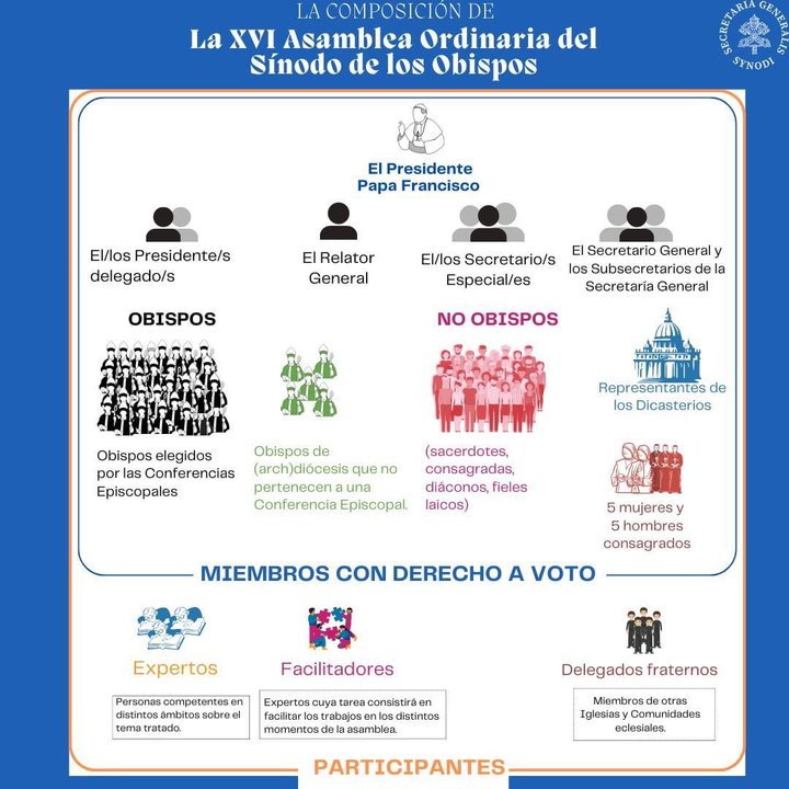 Según Vatican News, la Asamblea estará conformada por un total de 363 miembros, con derecho a voto y otro grupo numeroso sin derecho a voto. Un total de 22 españoles estarán presentes en esta Asamblea, 18 con derecho a voto y cuatro sin él.