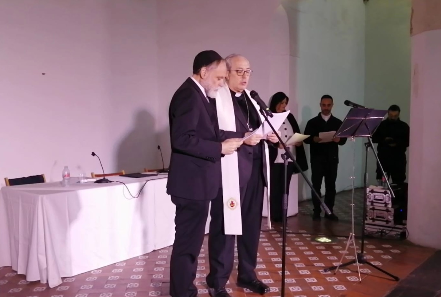 La jornada de la mañana incluyó una oración conjunta en la que el obispo auxiliar de Toledo Francisco César García Magán y Rab Moshé Bendahán leyeron juntos el salmo 122 de la Biblia.