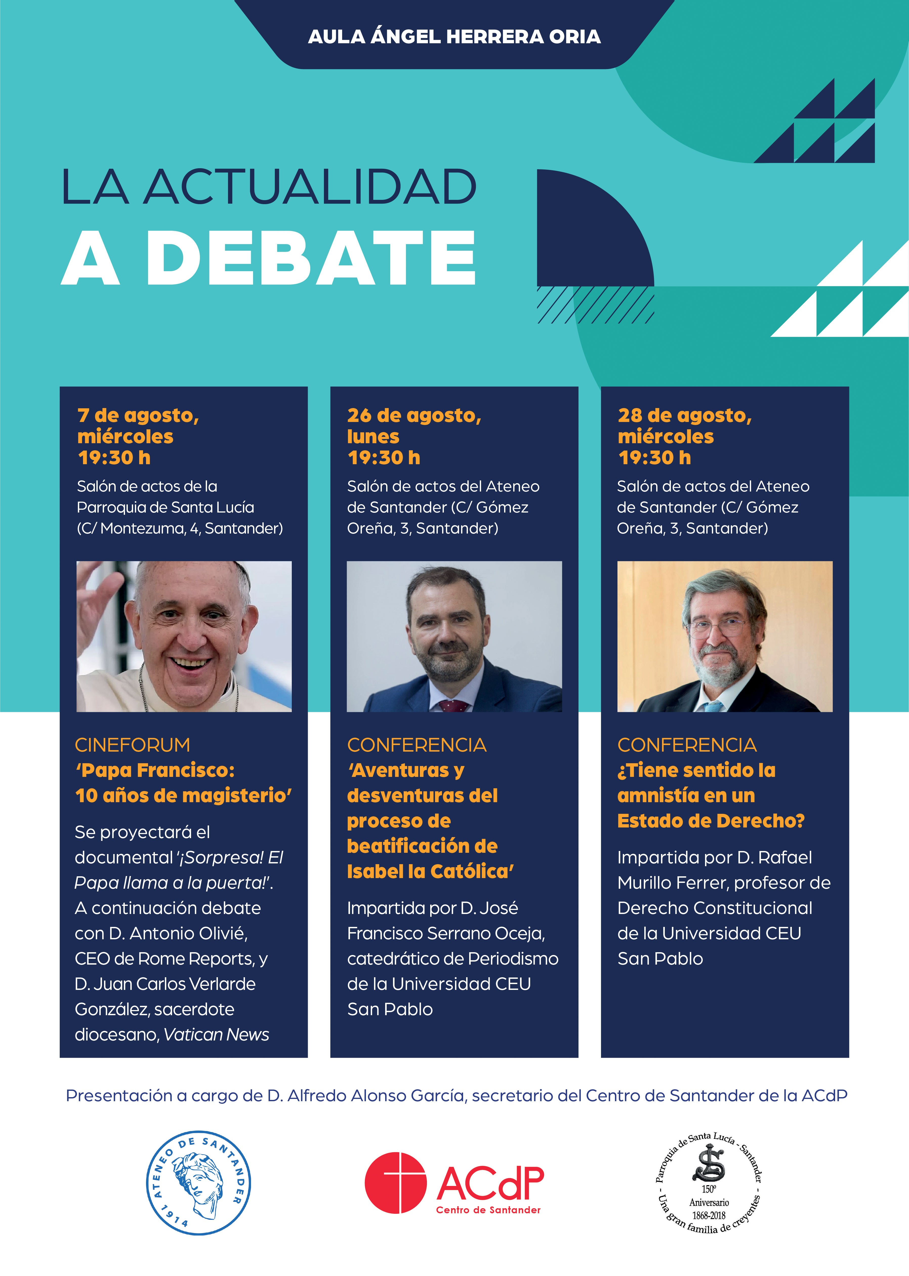 LUNES 26 DE AGOSTO a las 19:30 horas en el salón de actos deL ATENEO DE SANTANDER.