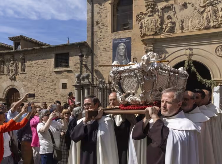 Tras la salida de la Basílica, se ha llevado a cabo una procesión hasta la plaza Mayor en la que el féretro ha estado acompañado de la banda de música de Alba de Tormes, las madres Carmelitas Descalzas y el personal de organización que ha permanecido dentro de la Basílica durante estos 15 días, recoge Europa Press.