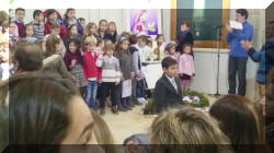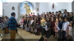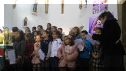 Los niños de la catequesis parroquial nos cantaron villancicos para felicitarnos la Navidad