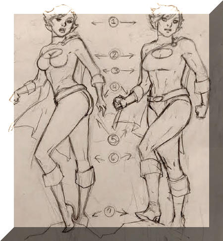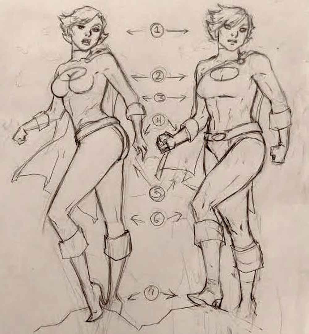 6. La de la izquierda se presenta como si estuviera posando. La de la derecha está de pie en actritud propia de superhéroe. Haz que su pose general sea funcional en vez de sexualmente atractiva.