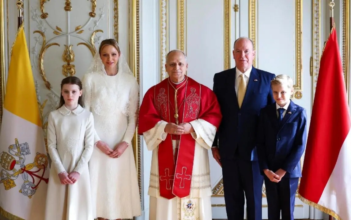 El Papa León junto a la familia del Príncipe Alberto II