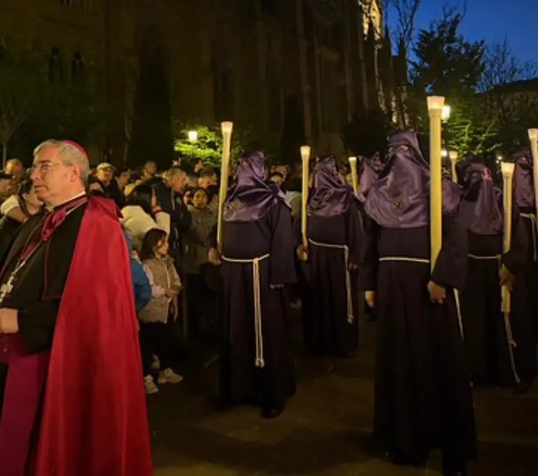 La Semana Santa ha regresado a las calles de San Sebastián tras medio siglo de ausencia, en una noche que ya forma parte de la memoria colectiva de la ciudad. La procesión del Viernes Santo, recuperada después de 50 años, ha supuesto no solo la vuelta de una tradición, sino también el cumplimiento de un sueño expresado por el obispo Fernando Prado Ayuso en su carta programática.